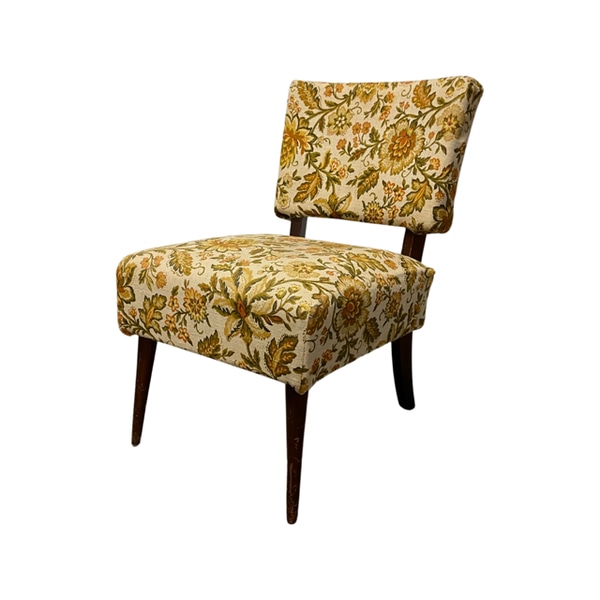 Vintage floral slipper chair in original fabric.