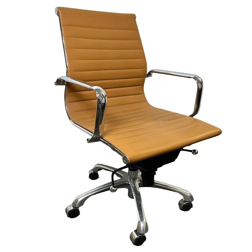 Leather desk chair with chrome armrests
