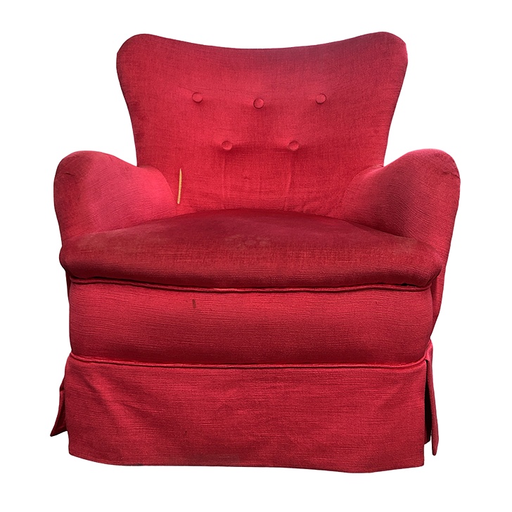 Vintage fuchsia fabric accent chair. Small rip on the backrest.